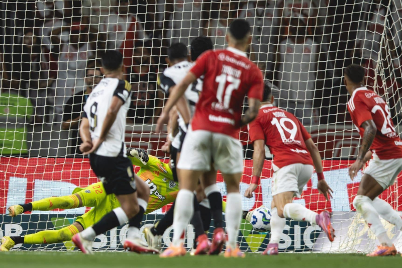 O Atlético-MG voltou melhor nos minutos iniciais, com Natanael arriscando de fora da área, mas sem perigo. O Internacional respondeu com cruzamentos e finalizações de Vitinho, Carbonero e Ricardo Mathias, mas Everson brilhou, salvando o Galo em duas grandes defesas aos 33 minutos.