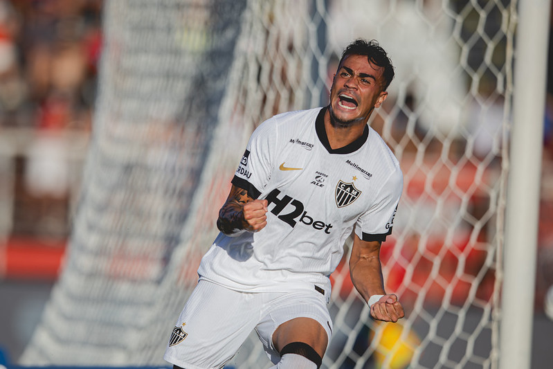 No lance seguinte, o meia quase virou novamente de cabeça, mas o gol foi anulado por impedimento. A resposta, porém, veio rápido: aos 8 minutos, Cuello cruzou, a bola desviou na zaga e matou o goleiro do Pouso Alegre, virada do Galo: 2 a 1.